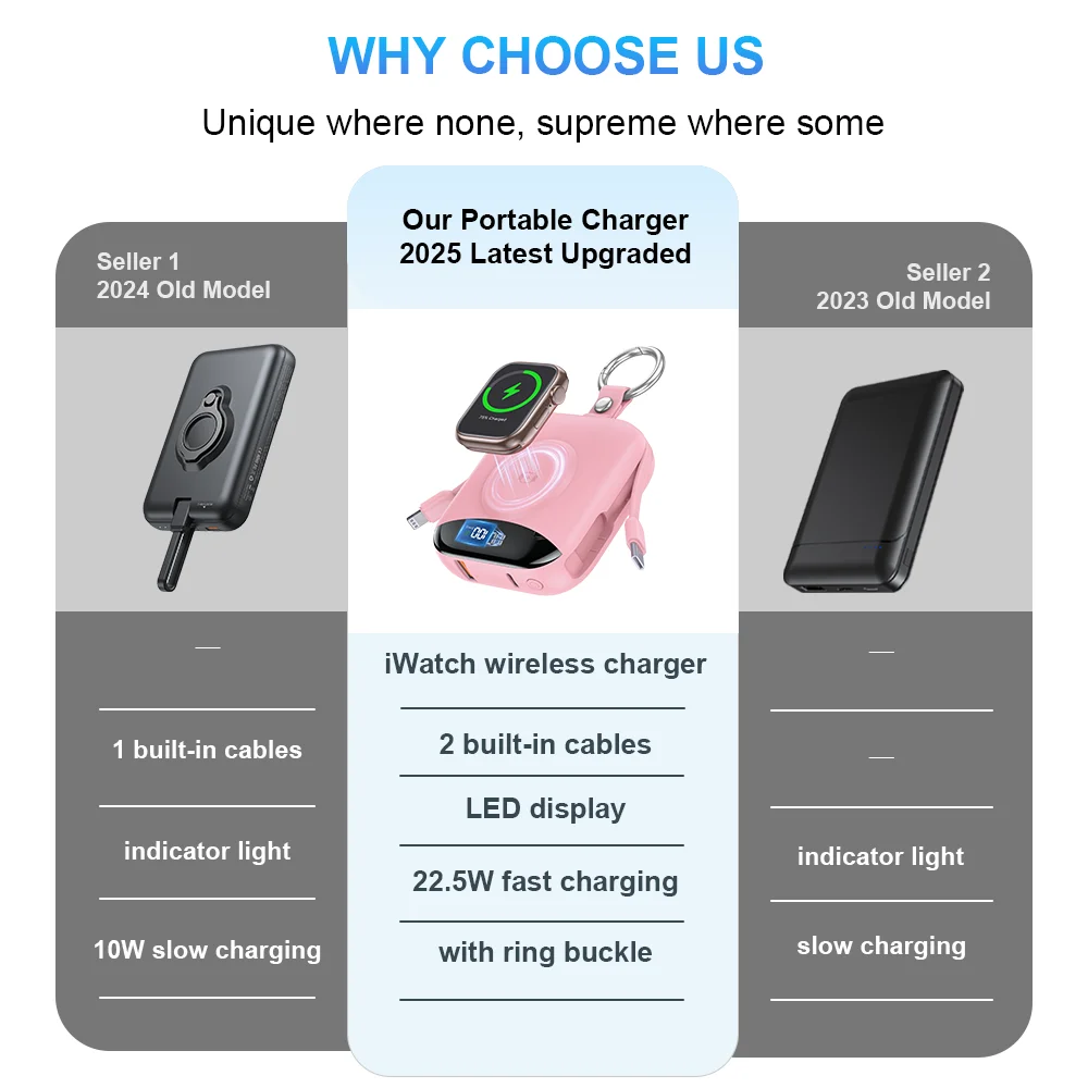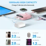 10000mAh 22.5W Fast Charging Power Bank with Built-in Cables, 4-in-1 Portable Charger with LED Display & Keychain for iWatch