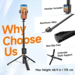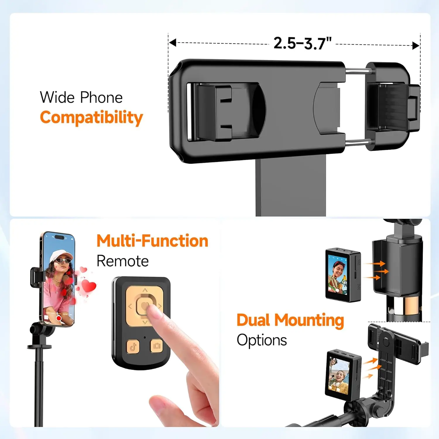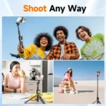 - 2-IN-1 SELFIE STICK & TRIPOD: Switch easily between handheld selfie stick and standing tripod. Ideal for travel, vloggers, YouTube, and TikTok content creation anytime, anywhere.